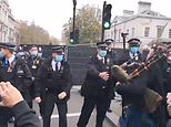 Girlfriend of Scots Guards veteran bagpiper behind Cenotaph stunt blasts ‘disgraceful’ police after ‘true patriot’ ex-UKIP candidate ‘was arrested for assault’ over video that showed him bragging he ‘provoked’ officers to shove him
