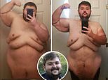 Before and after: At his heaviest, he would eat up to 8,000 calories a day while gorging on fast food for breakfast, lunch, and dinner. He now follows a strict diet