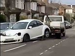 Demolition derby: Tow truck driver smashes VW Beetle into FOUR parked cars on a London street