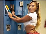 - The pictures shows shows her dressed in a school skirt while packing a locker