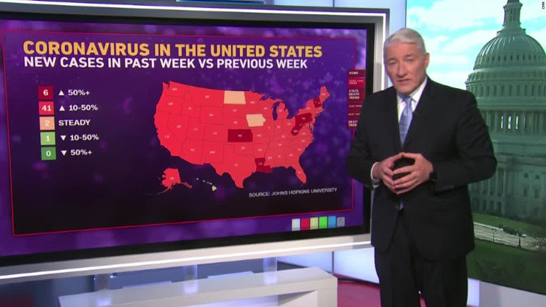 ‘);if (Modernizr && !Modernizr.phone) {$owlFirstItem.find(‘.media__icon’).hide();}}CNN.Videx.Metadata.init({dateCreated: videocardContents.dateCreated,descriptionText: videocardContents.descriptionText,duration: videocardContents.duration,sourceLink: videocardContents.sourceLink,sourceName: videocardContents.sourceName,title: videocardContents.headlineText},{videoCollectionDivId: ‘cn-empcm6’,videoDescriptionDivId: ‘js-video_description-empcm6’,videoDurationDivId: ‘js-video_duration-empcm6’,videoTitleDivId: ‘js-leaf-video_headline-empcm6’,videoSourceDivId: ‘js-video_sourceName-empcm6’});if (CNN.Utils.exists(videocardContents.showName)) {if (CNN.Utils.exists(videocardContents.showUrl)) {showDetailsSpanContent = ‘‘ + videocardContents.showName + ‘ | ‘;} else {showDetailsSpanContent = videocardContents.showName + ‘ | ‘;}}fastdom.measure(function getShowInfo() {var $show = jQuery(‘.metadata__show’),$isShowDetailsSpanExists = $show.find(‘span’).hasClass(‘metadata–show__name’),$showName = jQuery(‘.metadata–show__name’);fastdom.mutate(function updateShowInfo() {if (!$isShowDetailsSpanExists) {$show.prepend(‘‘ + showDetailsSpanContent + ‘‘);} else {$showName.html(showDetailsSpanContent);}});});if (typeof (history) !== ‘undefined’ && typeof (history.replaceState) !== ‘undefined’) {history.replaceState(”, ”, videocardContents.url);document.title = videocardContents.headlineText ? videocardContents.headlineText : ”;}}function getCurrentVideoCardContents(currentVideoId) {var containerContents = [{“branding”:””,”cardContents”:{“additionalSections”:[],”auxiliaryText”:””,”bannerText”:[],”bannerHasATag”:false,”bannerPosition”:””,”brandingLink”:””,”brandingImageUrl”:””,”brandingTextHead”:””,”brandingTextSub”:””,”cardSectionName”:””,”contentType”:””,”cta”:”share”,”descriptionText”:[“CNN’s u003ca href=”http://www.cnn.com/profiles/john-king-profile” target=”_blank”>John Kingu003c/a> looks at the rise in coronavirus cases in almost every state in the US.”],”descriptionPlainText”:”CNN’s John King looks at the rise in coronavirus cases in almost every state in the US.”,”headlinePostText”:””,”headlinePreText”:””,”headlineText”:”Coronavirus cases on the rise in 94% of states “,”headlinePlainText”:”Coronavirus cases on the rise in 94% of states “,”iconImageUrl”:””,”iconType”:”video”,”isMobileBannerText”:false,”kickerText”:””,”maximizedBannerSize”:[],”media”:{“contentType”:”image”,”type”:”element”,”cutFormat”:”16:9″,”elementContents”:{“caption”:”John King 1118″,”imageAlt”:”John King 1118″,”imageUrl”:”//cdn.cnn.com/cnnnext/dam/assets/201118132225-john-king-1118-large-169.jpg”,”label”:””,”galleryTitle”:””,”head”:””,”source”:”CNN”,”photographer”:”CNN”,”cuts”:{“mini”:{“width”:220,”type”:”jpg”,”uri”:”//cdn.cnn.com/cnnnext/dam/assets/201118132225-john-king-1118-small-169.jpg”,”height”:124},”xsmall”:{“width”:307,”type”:”jpg”,”uri”:”//cdn.cnn.com/cnnnext/dam/assets/201118132225-john-king-1118-medium-plus-169.jpg”,”height”:173},”small”:{“width”:460,”type”:”jpg”,”uri”:”//cdn.cnn.com/cnnnext/dam/assets/201118132225-john-king-1118-large-169.jpg”,”height”:259},”medium”:{“width”:780,”type”:”jpg”,”uri”:”//cdn.cnn.com/cnnnext/dam/assets/201118132225-john-king-1118-exlarge-169.jpg”,”height”:438},”large”:{“width”:1100,”type”:”jpg”,”uri”:”//cdn.cnn.com/cnnnext/dam/assets/201118132225-john-king-1118-super-169.jpg”,”height”:619},”full16x9″:{“width”:1600,”type”:”jpg”,”uri”:”//cdn.cnn.com/cnnnext/dam/assets/201118132225-john-king-1118-full-169.jpg”,”height”:900},”mini1x1″:{“width”:120,”type”:”jpg”,”uri”:”//cdn.cnn.com/cnnnext/dam/assets/201118132225-john-king-1118-small-11.jpg”,”height”:120}},”responsiveImage”:true,”originalImageUrl”:”//cdn.cnn.com/cnnnext/dam/assets/201118132225-john-king-1118.jpg”}},”noFollow”:false,”overMediaText”:””,”sectionUri”:””,”showSocialSharebar”:false,”shortUrl”:””,”statusText”:””,”statusColor”:””,”targetType”:””,”timestampDisplay”:””,”timestampUtc”:””,”lastModifiedText”:””,”lastModifiedState”:””,”type”:”card”,”url”:”/videos/health/2020/11/18/47-states-coronavirus-going-up-magic-wall-john-king-nr-vpx.cnn”,”width”:””,”webDisplayName”:”Health”,”height”:””,”videoCMSUri”:”/videos/health/2020/11/18/47-states-coronavirus-going-up-magic-wall-john-king-nr-vpx.cnn”,”videoId”:”health/2020/11/18/47-states-coronavirus-going-up-magic-wall-john-king-nr-vpx.cnn”,”adSection”:”const-video-leaf”,”dateCreated”:”1:02 PM ET, Wed November 18, 2020″,”sourceName”:”CNN”,”sourceLink”:”https://www.cnn.com”,”showName”:”Newsroom”,”showUrl”:”/shows/newsroom”},”contentType”:”video”,”maximizedBanner”:false,”type”:”card”,”autoStartVideo”:false},{“branding”:””,”cardContents”:{“additionalSections”:[],”auxiliaryText”:””,”bannerText”:[],”bannerHasATag”:false,”bannerPosition”:””,”brandingLink”:””,”brandingImageUrl”:””,”brandingTextHead”:””,”brandingTextSub”:””,”cardSectionName”:”health”,”contentType”:””,”cta”:”share”,”descriptionText”:[“u003ca href=”https://www.cnn.com/2020/11/17/health/pfizer-vaccine-fda-eua-submission-process/index.html” target=”_blank”>Pfizer has accumulated enough safety data on its Covid-19 vaccineu003c/a> and is preparing to file for emerge