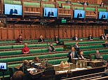 Britain’s Speaker of the House of Commons, Sir Lindsay Hoyle (left) and Prime Minister Boris Johnson on a screen (right) as he takes part virtually in the Prime Minister’s Questions