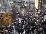 First Minister Nicola Sturgeon has said the stricter restrictions will ‘lower the risk’ of people getting Covid-19 at Christmas, with Scotland today confirming 32 deaths and 1,018 new cases. Pictured: Doormen leave the Argyll Arcade in Glasgow today