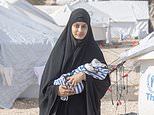 British Jihadi wife Shamima Begum pictured with her son Jerah (now deceased) in Al Hawl