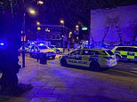 A woman in her 30s was rushed to hospital around 10pm last night after she was gunned down in Hackney, east London. She remains in a life-threatening condition. Pictured: Police at the scene