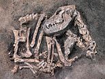 After months of painstaking excavation work, the remains of a faithful dog of a long-vanished breed who was buried more than 8,400 years ago beside his master in a grave in Sweden have been reveal in their full glory. Pictured, the dog’s remains