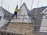 Moment furious builder smashes up two houses with a HAMMER and rips off chunks of wall after ‘not being paid’