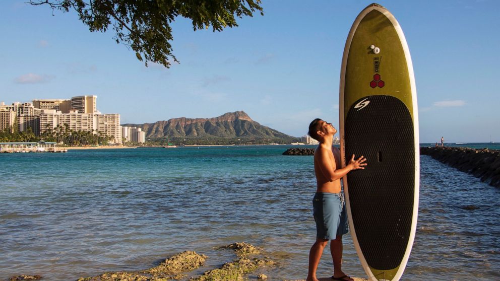 Bryant de Venecia of Honolulu took up standup paddle-boarding when beaches were less crowded.