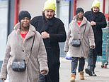 Evgenij was also suitably dressed in a black jacket and jeans, which were tucked into a pair of black boots, while he added a splash of colour with a yellow beanie.