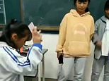 ‘We just saw the video. We are still investigating it.’ an official told reporters. ‘The school has banned [students from] bringing phones to help students focus on their studies, not playing on their phones.’