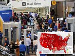 The CDC has warned Americans to postpone their travels plans and stay at home for Christmas and the holiday season. Pictured: Travelers go through security before boarding flights at Denver International Airport in Colorado, November 24