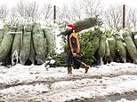 Dave Baptie works hard in the snow at the Hill End Christmas Tree Centre near Edinburgh, Friday November 4, 2020