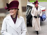 Sophie, 55, looked effortlessly chic as she donned a white winter coat and black boots before adding a dash of colour with a very striking burgundy hat on top of her honey locks for her visit to Kneller Hall, Twickenham.