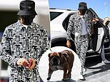 And he arrived on track, accompanied by treasured bulldog Roscoe, wearing an eye-catching black and white outfit, bucket hat and face mask.