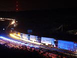 Lorries queue for the Port of Dover along the A20 in Kent late into the night as the Dover TAP (Traffic Access Protocol) is implemented due to high volumes of freight traffic