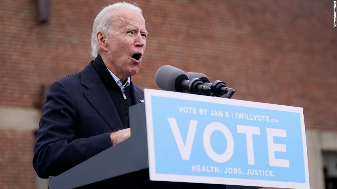 Biden said he believes the state will post record-breaking voter turnout in the Senate runoffs, urging voters to deliver the Democratic candidates, Ossoff and Warnock, large enough victories that they can’t be challenged by Republicans.