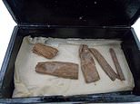 Pictured: Fragments of cedar wood, recovered from inside the pyramid at Giza, that were discovered in a cigar tin at the University of Aberdeen