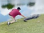 Water hazard! Hair-raising moment golfer sneaks up and retrieves ball from the tail of 10ft-long ALLIGATOR