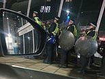 - Footage taken by a bus passenger showed more than a dozen police vehicles
