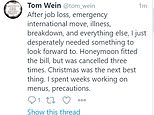 Another said: ‘After job loss, emergency international move, illness, breakdown, and everything else, I just desperately needed something to look forward to. Honeymoon fitted the bill, but was cancelled three times. Christmas was the next best thing. I spent weeks working on menus, precautions.’