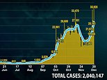 • Today’s 35,928 cases is 94.8 per cent larger than 18,447 recorded last Sunday
