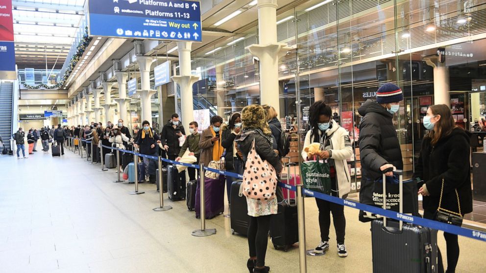 The Netherlands banned flights from the U.K. for at least the rest of the year. Ireland issued a 48-hour flight ban. Italy said it would block flights from the U.K. until Jan.6, and an order signed Sunday prohibits entry into Italy by anyone who has been in the U.K. in the last 14 days.