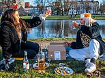 Photographs showed groups meeting to eat their Christmas dinners on Clapham Common in London today as the city is in Tier 4