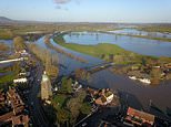 Aerial view of flooding at Upton Upon Severn in Worcestershire – one of the worst affected areas where many residents are still at high risk of flooding as storm Bella has hit overnight bringing heavy rain and strong winds across the country