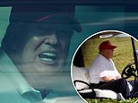 President Trump’s public schedule notes he is working ‘tirelessly’ for the American people; above he’s seen on his golf course