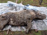 Frozen carcass of an extinct woolly rhino from the Ice Age is unearthed from the Siberian permafrost — with its hazel-coloured hair still intact even after around 34,000 years