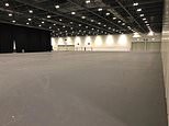 But after they were mothballed today it emerged health bosses have already started stripping the flagship Nightingale in London of its 4,000 beds, ventilators and even signs directing ambulances to wards. Photos from inside the hospital today revealed it is virtually deserted, with wards emptied of beds, chairs stacked on top of each other in storage and no ambulances outside.