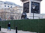 Photos show Trafalgar Square closed off from public access while council officials boarded up Winston Churchill’s statue by Parliament as police threaten to take tough action against Tier 4 rule-breakers.