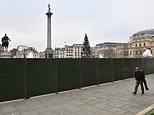 Photos show Trafalgar Square closed off from public access while council officials boarded up Winston Churchill’s statue by Parliament as police threaten to take tough action against Tier 4 rule-breakers