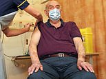Trevor Cowlett, 88, receives the Oxford University/AstraZeneca Covid vaccine from nurse Sam Foster at the Churchill Hospital in Oxford as the NHS ramps up its vaccination programme