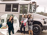 Couple sell their four-bedroom house and all their possessions to live and work in a souped-up school bus with their two children – and say they’ve found more of a sense of community on the road than living in the suburbs