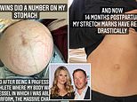 Morgan said she began doing physical therapy and pilates two weeks after giving birth (left) and tried microneedling for her stretch marks (right)