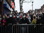 Watching from the sidelines! Police just look on as football fans gathered outside Marine v Spurs FA Cup tie blatantly ignore social-distancing with some not wearing masks