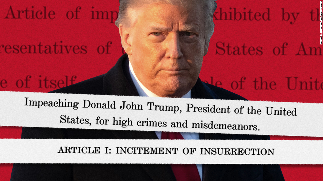 The single impeachment article, which was introduced when the House gaveled into a brief pro-forma session Monday, points to Trump’s repeated false claims that he won the election and his speech to the crowd on January 6 before pro-Trump rioters breached the Capitol. It also cited Trump’s call with the Georgia Republican secretary of state where the President urged him to “find” enough votes for Trump to win the state.