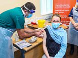 Kelly Heney pictured receiving an injection of the Covid-19 vaccine at the Depaul UK homeless shelter in Oldham, Greater Manchester, as the local council and GPs launch an effort to vaccinate homeless people in the town to protect them from the virus