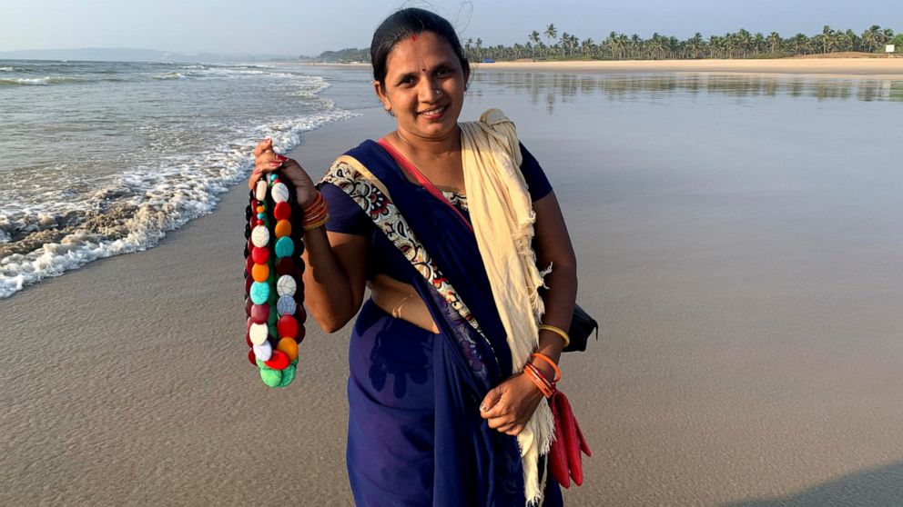 Seema Rajgarh, 37, is a lonely figure on nearly deserted Utorda beach in South Goa, her blue sari set against the expanse of the Arabian sea as she hawks jewelry made of beads and stones. None of the handful of domestic tourists is interested in buying them.