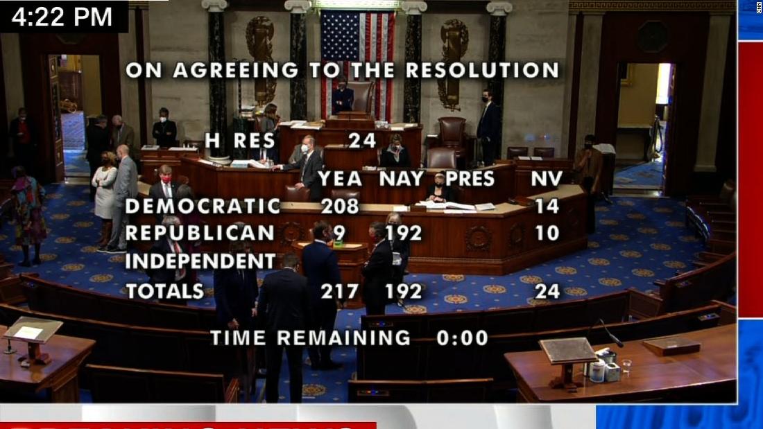 ‘);$vidEndSlate.removeClass(‘video__end-slate–inactive’).addClass(‘video__end-slate–active’);}};CNN.autoPlayVideoExist = (CNN.autoPlayVideoExist === true) ? true : false;var configObj = {thumb: ‘none’,video: ‘politics/2021/01/13/house-impeachment-trump-217-votes-capitol-riot-vpx.cnn’,width: ‘100%’,height: ‘100%’,section: ‘domestic’,profile: ‘expansion’,network: ‘cnn’,markupId: ‘large-media_0’,adsection: ‘const-video-leaf’,frameWidth: ‘100%’,frameHeight: ‘100%’,posterImageOverride: {“mini”:{“width”:220,”type”:”jpg”,”uri”:”//cdn.cnn.com/cnnnext/dam/assets/210113162750-house-impeachment-217-small-169.jpg”,”height”:124},”xsmall”:{“width”:307,”type”:”jpg”,”uri”:”//cdn.cnn.com/cnnnext/dam/assets/210113162750-house-impeachment-217-medium-plus-169.jpg”,”height”:173},”small”:{“width”:460,”type”:”jpg”,”uri”:”//cdn.cnn.com/cnnnext/dam/assets/210113162750-house-impeachment-217-large-169.jpg”,”height”:259},”medium”:{“width”:780,”type”:”jpg”,”uri”:”//cdn.cnn.com/cnnnext/dam/assets/210113162750-house-impeachment-217-exlarge-169.jpg”,”height”:438},”large”:{“width”:1100,”type”:”jpg”,”uri”:”//cdn.cnn.com/cnnnext/dam/assets/210113162750-house-impeachment-217-super-169.jpg”,”height”:619},”full16x9″:{“width”:1600,”type”:”jpg”,”uri”:”//cdn.cnn.com/cnnnext/dam/assets/210113162750-house-impeachment-217-full-169.jpg”,”height”:900},”mini1x1″:{“width”:120,”type”:”jpg”,”uri”:”//cdn.cnn.com/cnnnext/dam/assets/210113162750-house-impeachment-217-small-11.jpg”,”height”:120}}},autoStartVideo = false,isVideoReplayClicked = false,callbackObj,containerEl,currentVideoCollection = [{“descriptionPlainText”:”The House of Representatives reaches the 217-vote threshold, meaning enough votes have been cast to make President Donald Trump the only President of the United States to be impeached for the second time.”,”imageUrl”:”//cdn.cnn.com/cnnnext/dam/assets/210113162750-house-impeachment-217-large-169.jpg”,”title”:”See historic moment House reaches enough votes to impeach Trump”,”videoCMSUrl”:”/video/data/3.0/video/politics/2021/01/13/house-impeachment-trump-217-votes-capitol-riot-vpx.cnn/index.xml”,”videoLeafUrl”:”/videos/politics/2021/01/13/house-impeachment-trump-217-votes-capitol-riot-vpx.cnn”,”videoId”:”politics/2021/01/13/house-impeachment-trump-217-votes-capitol-riot-vpx.cnn”,”videoUrl”:”/videos/politics/2021/01/13/house-impeachment-trump-217-votes-capitol-riot-vpx.cnn/video/playlists/president-trump-second-impeachment/”,”surrogateKey”:”video_D4FF7C0F-BCED-3781-3A7B-FD9F7B8F9A82″},{“descriptionPlainText”:”CNN’s Abby Phillip reacts to Rep. Tom McClintock’s (R-CA) baseless argument implying that if Black Lives Matter or Antifa protesters were “prosecuted with same determination,” the Capitol riots wouldn’t have happened.”,”imageUrl”:”//cdn.cnn.com/cnnnext/dam/assets/210113172008-abby-phillip-tom-mcclintock-01-13-2021-bts-vpx-large-169.jpg”,”title”:”‘Unbelievable’: Phillip stunned by GOP lawmaker’s impeachment argument”,”videoCMSUrl”:”/video/data/3.0/video/politics/2021/01/13/tom-mcclintock-black-lives-matter-protests-capitol-riots-abby-phillip-bts-vpx.cnn/index.xml”,”videoLeafUrl”:”/videos/politics/2021/01/13/tom-mcclintock-black-lives-matter-protests-capitol-riots-abby-phillip-bts-vpx.cnn”,”videoId”:”politics/2021/01/13/tom-mcclintock-black-lives-matter-protests-capitol-riots-abby-phillip-bts-vpx.cnn”,”videoUrl”:”/videos/politics/2021/01/13/tom-mcclintock-black-lives-matter-protests-capitol-riots-abby-phillip-bts-vpx.cnn/video/playlists/president-trump-second-impeachment/”,”surrogateKey”:”video_D4FF7C0F-BCED-3781-3A7B-FD9F7B8F9A82″},{“descriptionPlainText”:”House Minority Leader Kevin McCarthy (R-CA) says that President Donald Trump “bears responsibility for the attack on Congress by mob rioters.” CNN’s Jake Tapper points out McCarthy’s past support of Trump’s baseless election fraud claims.”,”imageUrl”:”//cdn.cnn.com/cnnnext/dam/assets/210113135832-rep-kevin-mccarthy-january-13-2020-01-large-169.jpg”,”title”:”House GOP leader: The President bears responsibility for attack”,”videoCMSUrl”:”/video/data/3.0/video/politics/2021/01/13/trump-house-second-impeachment-vote-kevin-mccarthy-vpx.cnn/index.xml”,”videoLeafUrl”:”/videos/politics/2021/01/13/trump-house-second-impeachment-vote-kevin-mccarthy-vpx.cnn”,”videoId”:”politics/2021/01/13/trump-house-second-impeachment-vote-kevin-mccarthy-vpx.cnn”,”videoUrl”:”/videos/politics/2021/01/13/trump-house-second-impeachment-vote-kevin-mccarthy-vpx.cnn/video/playlists/president-trump-second-impeachment/”,”surrogateKey”:”video_9924038B-A10D-A67E-C4EF-FDBA2B32C36C”},{“descriptionPlainText”:”Rep. Cedric Richmond (D-LA) addresses his colleagues during the second impeachment vote against President Trump, saying that Republicans need to “stand up, man up and woman up” against Trump, following the riots on Capitol Hill.”,”imageUrl”:”//cdn.cnn.com/cnnnext/dam/assets/210113132407-cedric-richmond-large-169.jpg”,”title”:”Rep. Richmond to GOP: Stand up and defend this Constitution”,”videoCMSUrl”:”/video/data/3.0/video/politics/2021/01/13/trump-house-second-impeachment-vote-cedric-richmond-sot-vpx.cnn/index.xml”,”videoLeafUrl”:”/videos/politics/2021/01/13/trump-house-second-impeachment-vote-cedric-richmond-sot-vpx.cnn”,”videoId”:”politics/2021/01/13/trump-house-second-impeachment-vote-cedric-richmond-sot-vpx.cnn”,”videoUrl”:”/videos/politics/2021/01/13/trump-house-second-impeachment-vote-cedric-richmond-sot-vpx.cnn/video/playlists/president-trump-second-impeachment/”,”surrogateK
