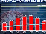 To hit its target of 13.9million people by February 15, which is the Prime Minister’s target before he can start to think about loosening lockdown restrictions in March, the nation must manage 360,000 per day, and this number will increase for every day that the target isn’t hit.