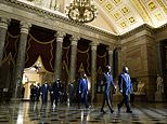 Crime scene: Clerk of the House Cheryl Johnson along with House Sergeant-at-Arms Tim Blodgett lead the Democratic House impeachment managers as they walk through Statuary Hall. It is less than three weeks since MAGA rioters stormed into the Capitol