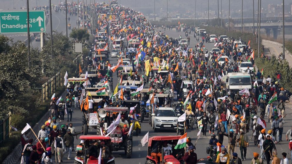 Most of the protesters are farmers from northern Punjab and Haryana states, the two biggest agricultural producers. They are demanding the repeal of laws passed by Parliament in September that they say will favor large corporate farms, devastate the earnings of many farmers and leave those who hold small plots behind as big corporations win out. Modi has billed the laws as necessary to modernize Indian farming.