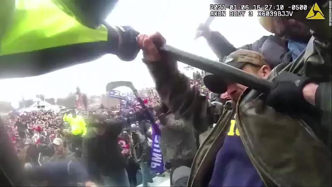 ‘);$vidEndSlate.removeClass(‘video__end-slate–inactive’).addClass(‘video__end-slate–active’);}};CNN.autoPlayVideoExist = (CNN.autoPlayVideoExist === true) ? true : false;var configObj = {thumb: ‘none’,video: ‘politics/2021/01/29/body-cam-footage-shows-attack-on-police-capitol-riots-prokupecz-lead-vpx.cnn’,width: ‘100%’,height: ‘100%’,section: ‘domestic’,profile: ‘expansion’,network: ‘cnn’,markupId: ‘large-media_0’,adsection: ‘const-video-leaf’,frameWidth: ‘100%’,frameHeight: ‘100%’,posterImageOverride: {“mini”:{“width”:220,”type”:”jpg”,”uri”:”//cdn.cnn.com/cnnnext/dam/assets/210129170336-body-cam-footage-attack-on-police-lead-vpx-small-169.jpg”,”height”:124},”xsmall”:{“width”:307,”type”:”jpg”,”uri”:”//cdn.cnn.com/cnnnext/dam/assets/210129170336-body-cam-footage-attack-on-police-lead-vpx-medium-plus-169.jpg”,”height”:173},”small”:{“width”:460,”type”:”jpg”,”uri”:”//cdn.cnn.com/cnnnext/dam/assets/210129170336-body-cam-footage-attack-on-police-lead-vpx-large-169.jpg”,”height”:259},”medium”:{“width”:780,”type”:”jpg”,”uri”:”//cdn.cnn.com/cnnnext/dam/assets/210129170336-body-cam-footage-attack-on-police-lead-vpx-exlarge-169.jpg”,”height”:438},”large”:{“width”:1100,”type”:”jpg”,”uri”:”//cdn.cnn.com/cnnnext/dam/assets/210129170336-body-cam-footage-attack-on-police-lead-vpx-super-169.jpg”,”height”:619},”full16x9″:{“width”:1600,”type”:”jpg”,”uri”:”//cdn.cnn.com/cnnnext/dam/assets/210129170336-body-cam-footage-attack-on-police-lead-vpx-full-169.jpg”,”height”:900},”mini1x1″:{“width”:120,”type”:”jpg”,”uri”:”//cdn.cnn.com/cnnnext/dam/assets/210129170336-body-cam-footage-attack-on-police-lead-vpx-small-11.jpg”,”height”:120}}},autoStartVideo = false,isVideoReplayClicked = false,callbackObj,containerEl,currentVideoCollection = [{“descriptionPlainText”:”Disturbing police body camera video, played by prosecutors in a federal court hearing, shows a brutal attack on police during the Capitol riot. CNN’s Shimon Prokupecz reports.”,”imageUrl”:”//cdn.cnn.com/cnnnext/dam/assets/210129170336-body-cam-footage-attack-on-police-lead-vpx-large-169.jpg”,”title”:”Bodycam footage shows rioters attacking police during insurrection”,”videoCMSUrl”:”/videos/politics/2021/01/29/body-cam-footage-shows-attack-on-police-capitol-riots-prokupecz-lead-vpx.cnn”,”videoLeafUrl”:”/videos/politics/2021/01/29/body-cam-footage-shows-attack-on-police-capitol-riots-prokupecz-lead-vpx.cnn”,”videoId”:”politics/2021/01/29/body-cam-footage-shows-attack-on-police-capitol-riots-prokupecz-lead-vpx.cnn”,”videoUrl”:”/videos/politics/2021/01/29/body-cam-footage-shows-attack-on-police-capitol-riots-prokupecz-lead-vpx.cnn”,”surrogateKey”:”video_EFB44E4C-9BEA-0492-E937-5018AFB1AF95″},{“descriptionPlainText”:”Rep. Cori Bush (D-MO) announced that she will be moving her office away from Rep. Marjorie Taylor Greene (R-GA), following a heated exchange earlier this month where Bush confronted Greene about not wearing a mask.”,”imageUrl”:”//cdn.cnn.com/cnnnext/dam/assets/210129140423-greene-bush-split-large-169.jpg”,”title”:”Video posted by Greene shows part of mask altercation with Bush “,”videoCMSUrl”:”/video/data/3.0/video/politics/2021/01/29/marjorie-taylor-greene-cori-bush-altercation-nobles-tsr-vpx.cnn/index.xml”,”videoLeafUrl”:”/videos/politics/2021/01/29/marjorie-taylor-greene-cori-bush-altercation-nobles-tsr-vpx.cnn”,”videoId”:”politics/2021/01/29/marjorie-taylor-greene-cori-bush-altercation-nobles-tsr-vpx.cnn”,”videoUrl”:”/videos/politics/2021/01/29/marjorie-taylor-greene-cori-bush-altercation-nobles-tsr-vpx.cnn/video/playlists/this-week-in-politics/”,”surrogateKey”:”video_A4D52FBD-9E1F-7B2E-F250-508DA77AC7AE”},{“descriptionPlainText”:”CNN’s Christiane Amanpour talks to Washington Post Executive Editor Marty Baron, his first interview since announcing his retirement. Baron explains his decision to step down and what it was like covering the Trump administration.”,”imageUrl”:”//cdn.cnn.com/cnnnext/dam/assets/210129151122-amanpour-baron-split-0129-large-169.jpg”,”title”:”‘We were not at war, we were at work’: WaPo editor on covering Trump”,”videoCMSUrl”:”/video/data/3.0/video/media/2021/01/29/marty-baron-washington-post-retirement-trump-amanpour-bts-vpx.cnn/index.xml”,”videoLeafUrl”:”/videos/media/2021/01/29/marty-baron-washington-post-retirement-trump-amanpour-bts-vpx.cnn”,”videoId”:”media/2021/01/29/marty-baron-washington-post-retirement-trump-amanpour-bts-vpx.cnn”,”videoUrl”:”/videos/media/2021/01/29/marty-baron-washington-post-retirement-trump-amanpour-bts-vpx.cnn/video/playlists/this-week-in-politics/”,”surrogateKey”:”video_17D970BE-8177-4FE6-CF36-4FA797DA9DB1″},{“descriptionPlainText”:”CNN legal analyst Paul Callan says that he expects more people arrested for participating in the deadly riot at the US Capitol to employ a “blame Trump” defense to limit bail or jail time, but he believes that it likely won’t work.”,”imageUrl”:”//cdn.cnn.com/cnnnext/dam/assets/210128205257-trump-oval-office-large-169.jpg”,”title”:”Some arrested in US Capitol riot use ‘blame Trump’ defense”,”videoCMSUrl”:”/video/data/3.0/video/us/2021/01/29/blame-trump-defense-us-capitol-riot-paul-callan-sot-nr-vpx.cnn/index.xml”,”videoLeafUrl”:”/videos/us/2021/01/29/blame-trump-defense-us-capitol-riot-paul-callan-sot-nr-vpx.cnn”,”videoId”:”us/2021/01/29/blame-trump-defense-us-capitol-riot-paul-callan-sot-nr-vpx.cnn”,”videoUrl”:”/videos/us/2021/01/29/blame-trump-defense-us-capitol-riot-paul-callan-sot-nr-vpx.cnn/video/playlists/this-week-in-politics/”,”surrogateKey”: