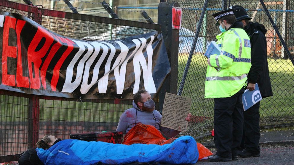 LONDON — Protesters have blocked the entrance of an Israeli-owned factory in England where they claim deadly weapons are made.