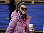 Rebekah Vardy, dressed in black leggings and pink jacket with her hair swept back, was seen smiling today as she took part in a rehearsal for ITV’s Dancing on Ice (left). On the right is Coleen Rooney at a local coffee shop in Cheshire
