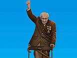 Pictured: Graffiti is seen on the statue of Winston Churchill, in London, in September last year
