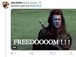 Jack Dolan shared an image of Mel Gibson delivering his famous war speech as William Wallace in Brave Heart with the caption: ‘Scotland right now.’