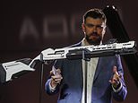 The Kalashnikov group, which produces the AK-47 assault rifle, has unveiled its hipster ‘gadget gun’ aimed at Gen Z customers who can’t bear to be without tech. Pictured, the group’s director first presented the futuristic weapon in Moscow, Russia, on August 21, 2020